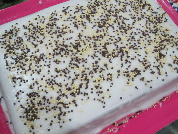 Aplique sobre o bolo frio, decorando com sulcos ou picos.